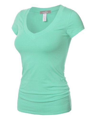With all our fun and summery colors, the 9xis womens basic v-neck t-shirt will get you ready for summer. Our womens basic short sleeve t-shirt has just enough stretch to make it comfy for any occasion.