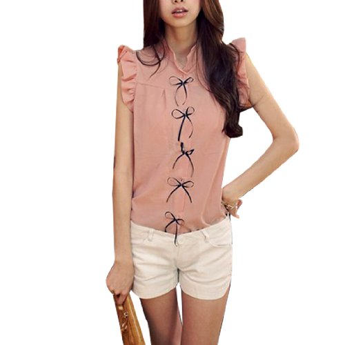Allegra K Lady Bowknot Decor Front Ruffled Hem Sleeveless Blouse