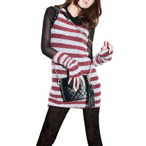 - Features Sleeveless, Beaded, Black Faux Leather Trim, Knit Style, Red and Gray Stripe, Pullover Shirt. Come with a pair of arm warmers. This model is about 162cm/5.3ft in height.(As Picture Shown). Woman Knit Shirt ONLY, other accessories photographed not included. Please check your measurements to make sure the item fits before ordering.