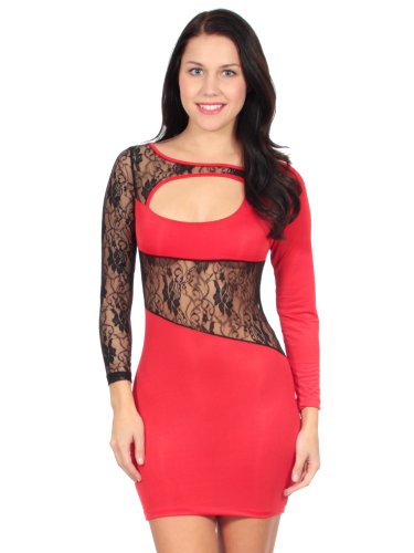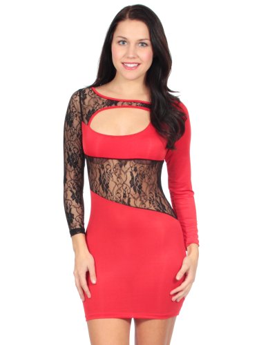 This is your traditional tight fix sexy cocktail dress with a bit of a twist. The sexy transparent black lace replaces one arm, and a strip low across your chest. You will be sure to stand out as the most gorgeous woman there at any party, club, or event!