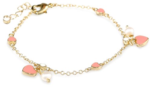 Little Miss Twin Stars Girls' Pink Hearts and Fresh Water Pearls Vermeil Chain Charm Bracelet, 5.5"