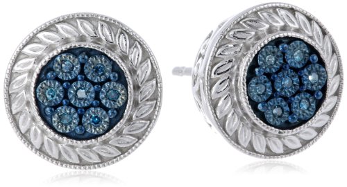 - These stud earrings feature a center of blue diamonds encircled by a sterling silver halo with a milgrain finish.