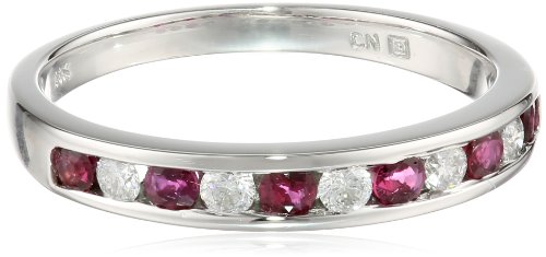 White-Gold Diamond and Ruby Ring (0.2cttw, G-H Color, I1-I2 Clarity)